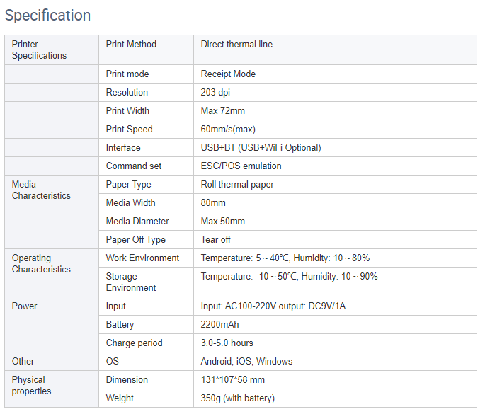 58mm mobile printer