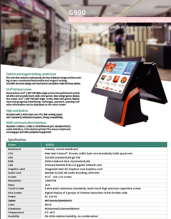 15.6 inch single or daul touch screen android or windows system pos terminal G900 for supermarket and restaurant and telecom